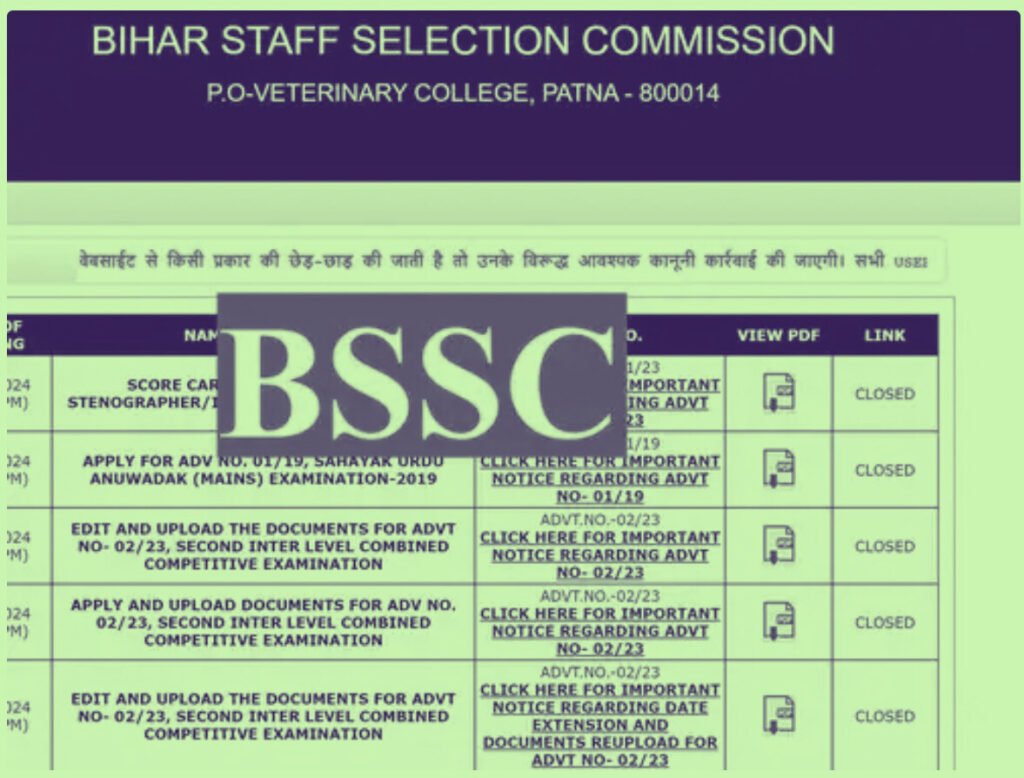 BSSC : बिहार कर्मचारी चयन आयोग द्वारा 8000 भर्ती क्लर्क...