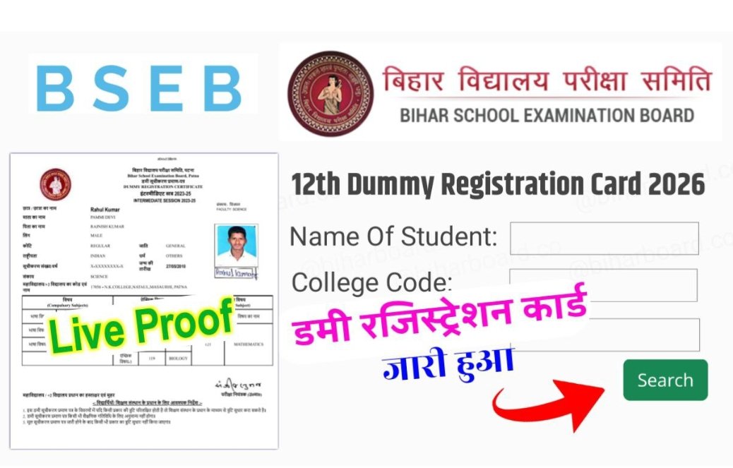 - Bihar Board 12th dummy registration card download 2026 : बिहार बोर्ड ने 12वीं डमी रजिस्ट्रेशन कार्ड जारी किया , डाउनलोड करे