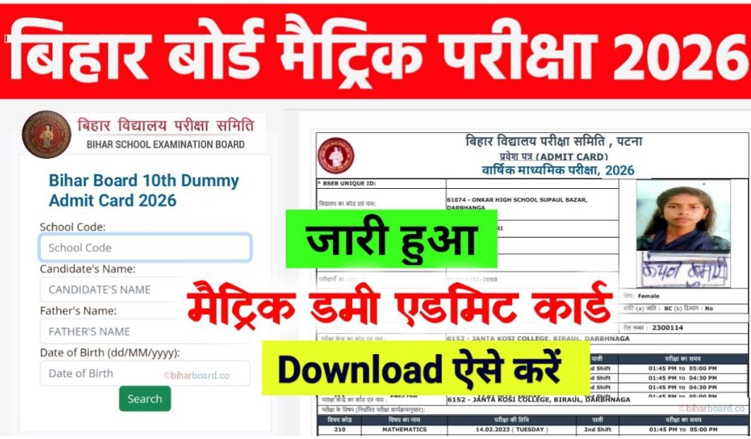 - Bihar Board Dummy Registration Card 2026: सभी 10वीं और 12वीं छात्रों के लिए पूरी जानकारी