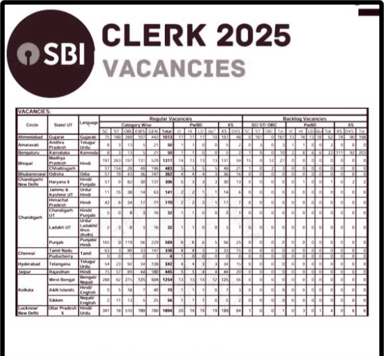 SBI Clerk Vacancy 2025 : एसबीआई में क्लर्क की भर्ती की खास बातें…