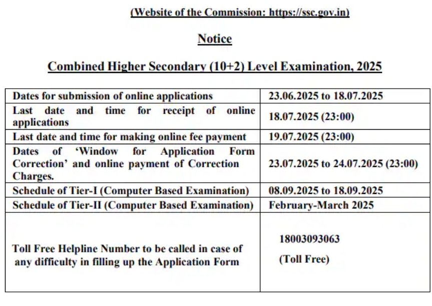 एसएससी सीएचएसएल 2025 की अधिसूचना | 23 jun 2025 |